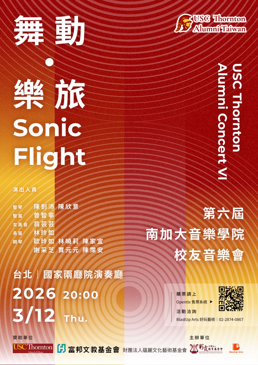 邀請您來欣賞《舞動・樂旅》南加大音樂學院台灣校友音樂會 VI Sonic Flight ✈️
